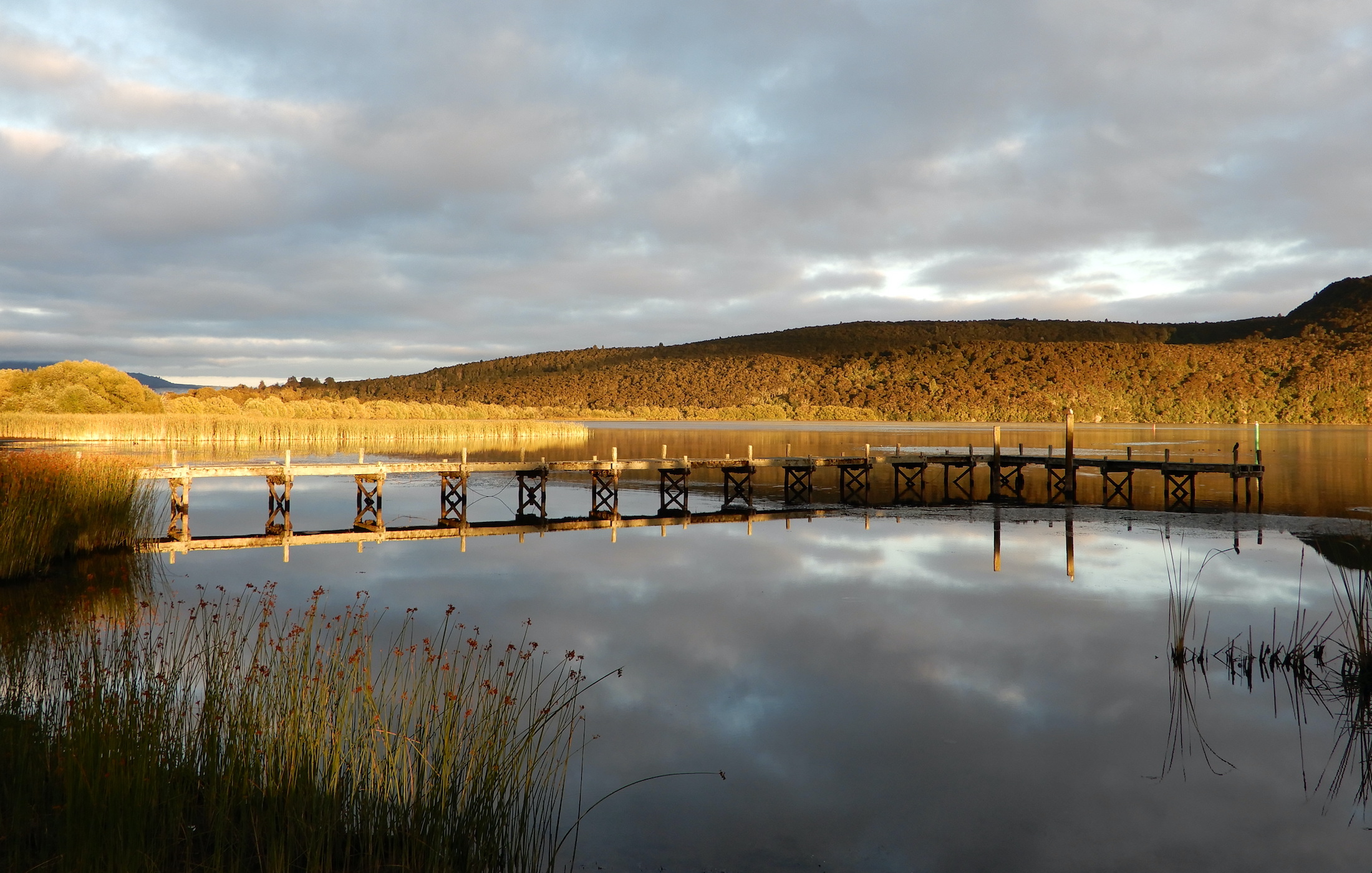 Strolling back an hour or so later, we came across an interesting structure. The Huon Pine timbers were recovered from the river in 2005 after spending forty years buried in silt and sand at the heads. They were part of the original Corinna barge, built in 1878, that transported prospectors, surveyors, livestock and general goods across the river using a cable and hand winch. From 1945, the barge plied up and down the river assisted by a power boat tied alongside. It’s life came to an end when, in 1964, it was washed away from its moorings in a flood and lost.