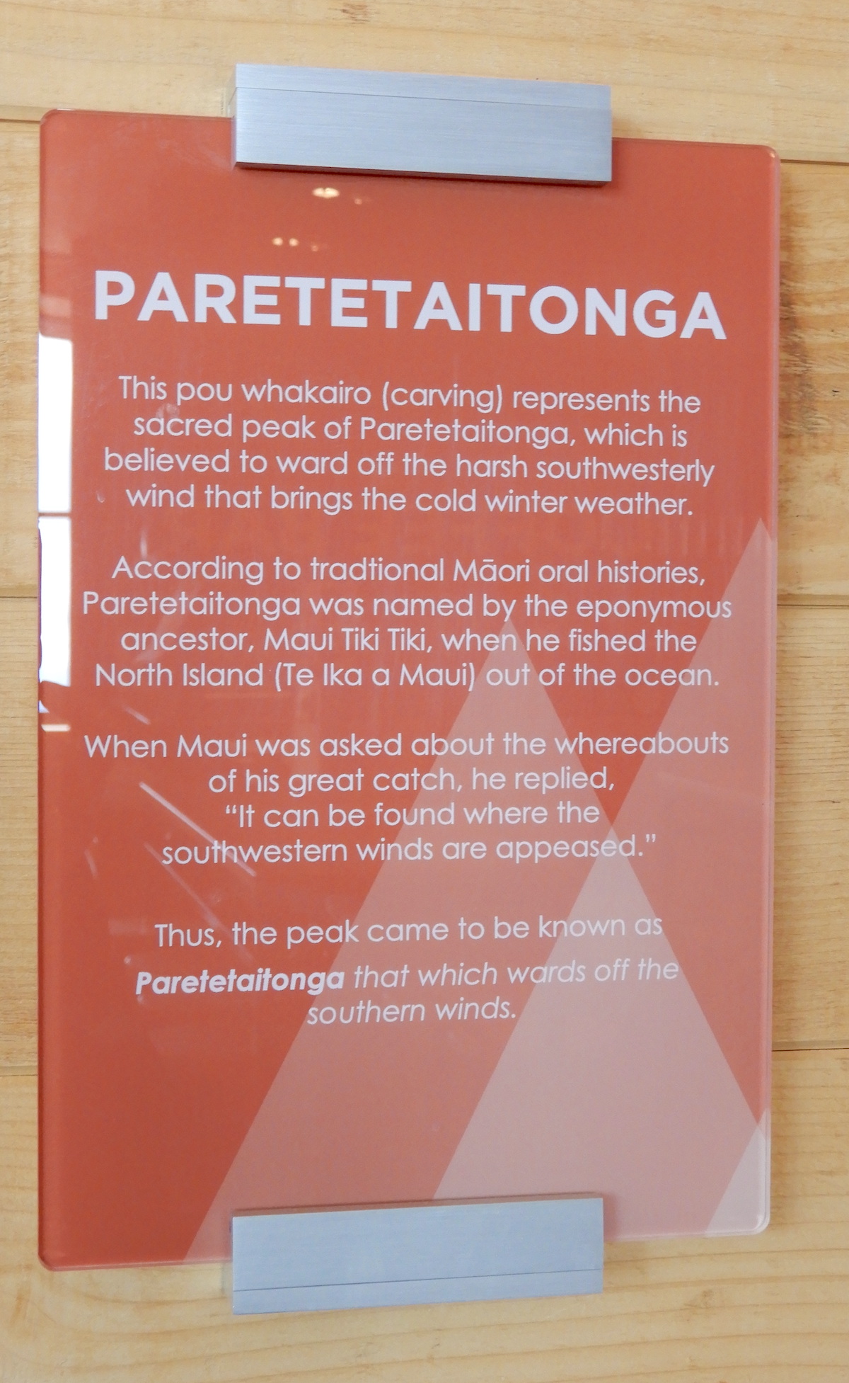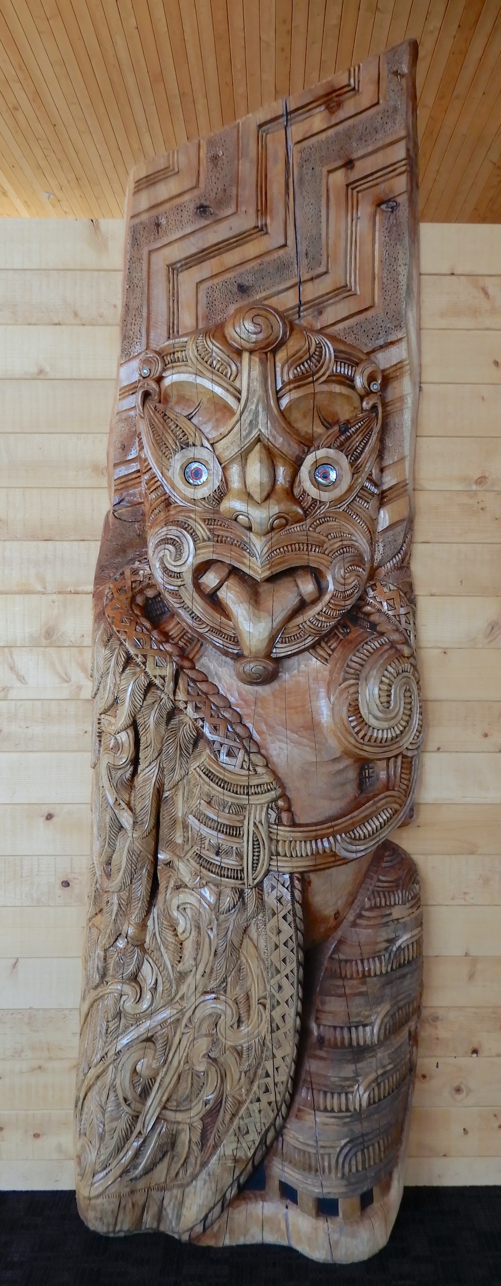 Mount Ruapehu is the largest active volcano in New Zealand and has three major peaks. There is a beautiful carving representing Paretetaitonga, the peak that wards off the southern winds.