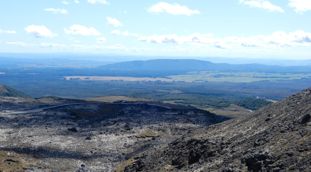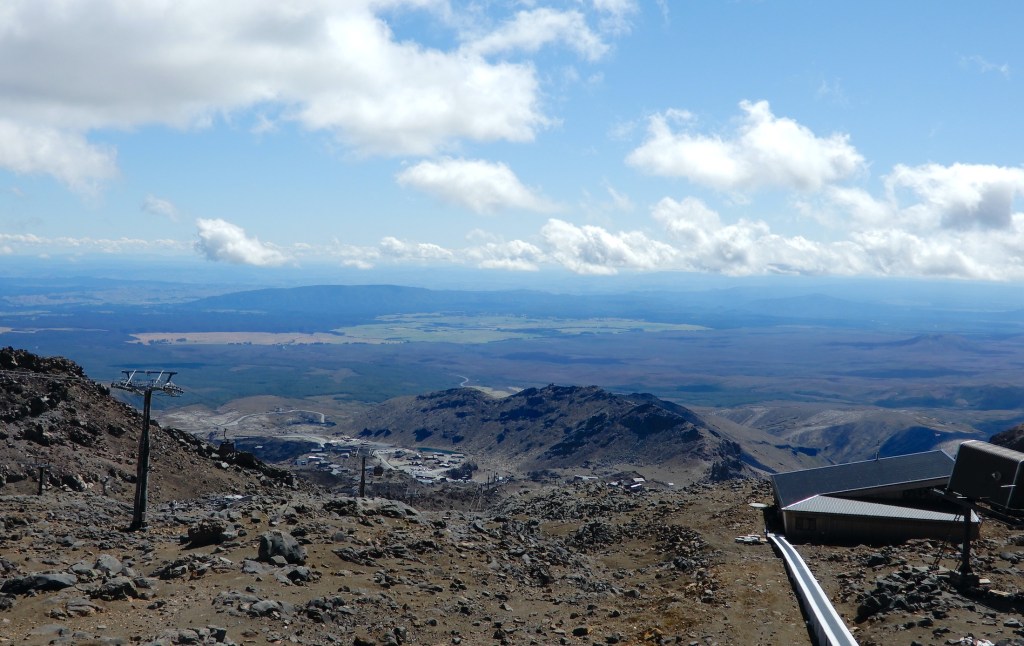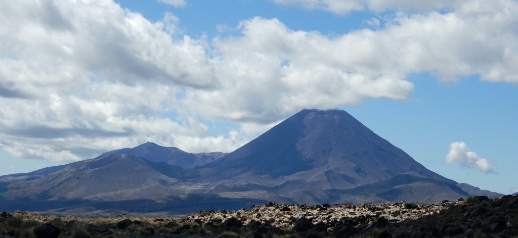 Tongariro National Park was a scenic forty minute drive from our haven at Motuoapa Bay. New Zealand’s first national park, Tongariro was gifted to the people by Te Heuheu Tukino IV, the Paramount Chief of local Māori tribe Ngati Tuwharetoa, in September 1887. The 80,000 hectare park is centred around three sacred volcanic peaks. A lookout on the way to our destination, Whakapapa Village, rewarded us with views of Mount Tongariro and Mount Ngauruhoe, the latter (on the right) may be recognised by The Lord of the Rings fans as Mount Doom.