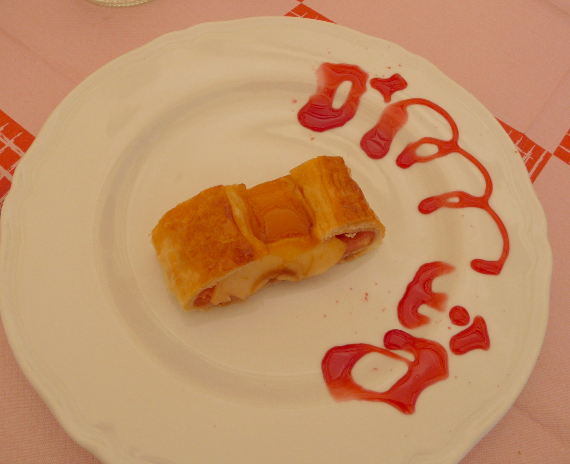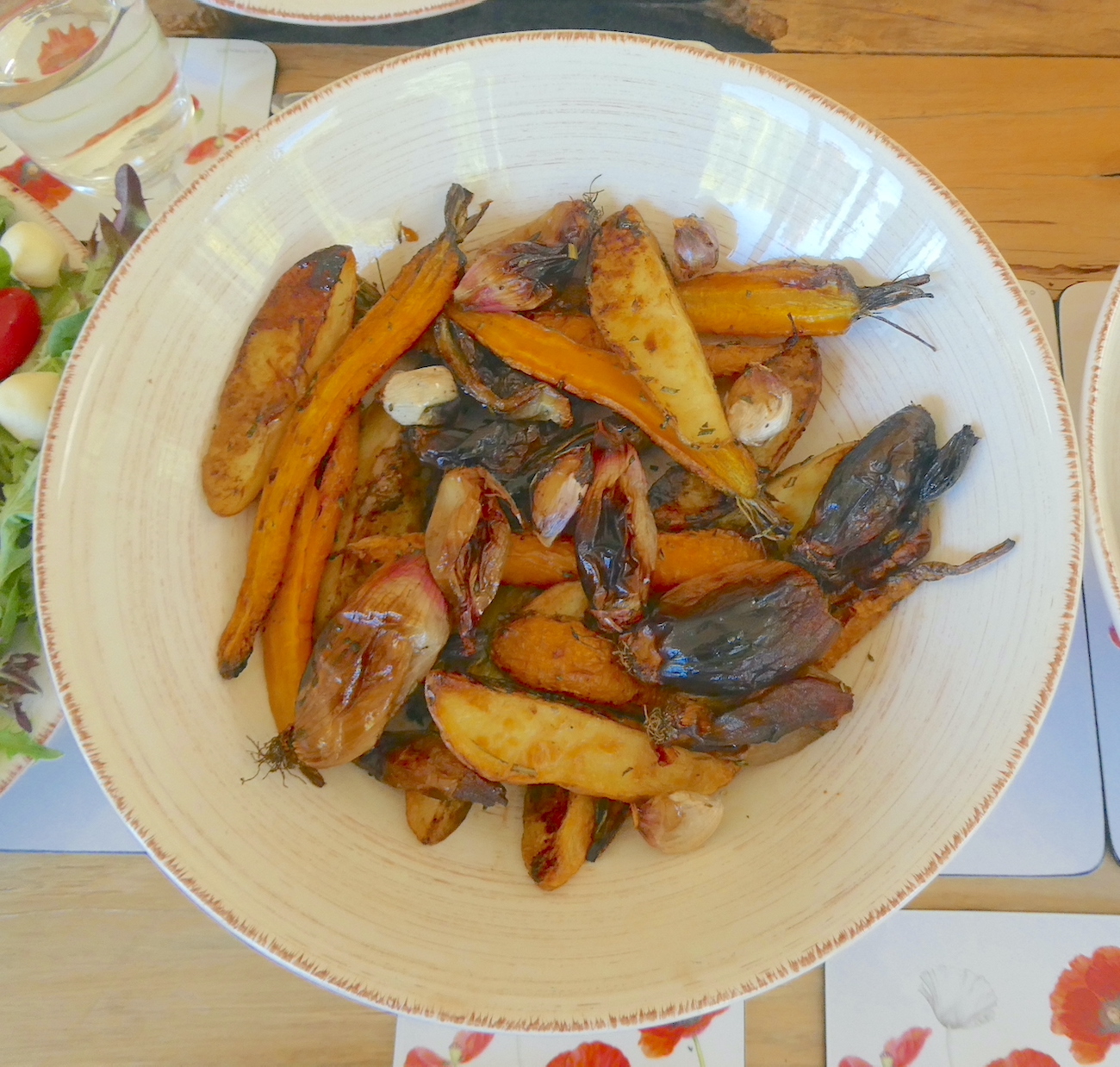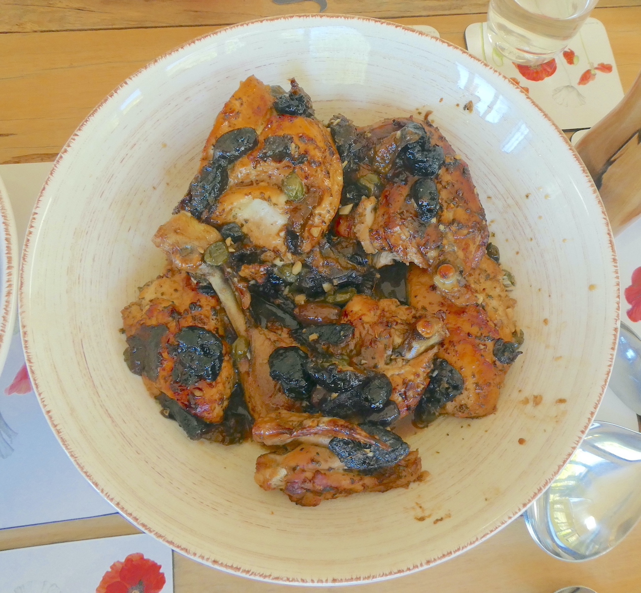 A stroll around the garden in the sunshine made room for main course of Prune & Olive Chicken, roasted onions, potatoes & carrots and a Wreath Caprese Salad, complemented by a bottle of Balliamo Pinot Grigio.