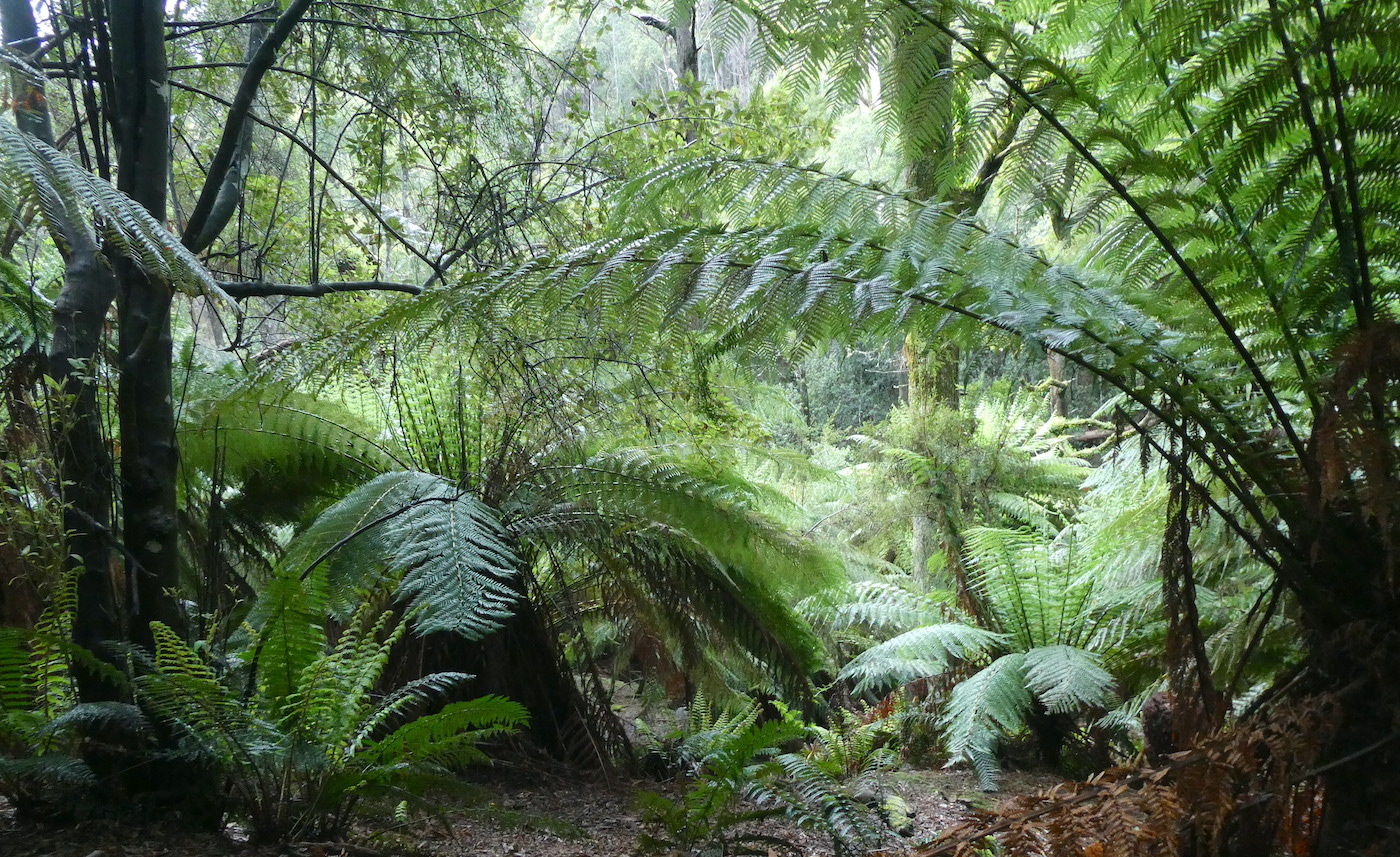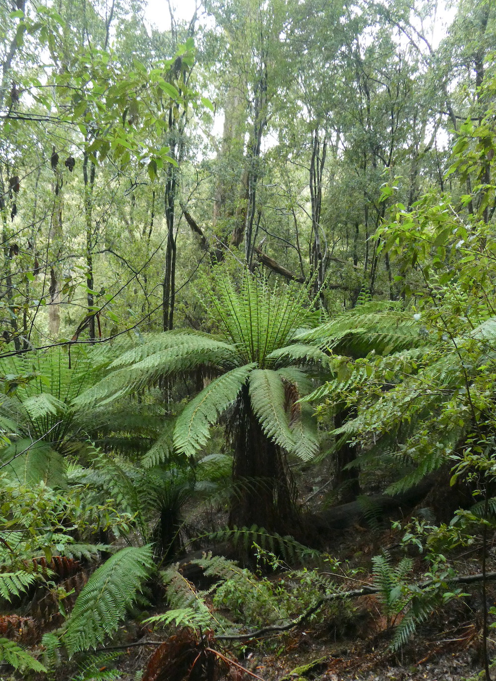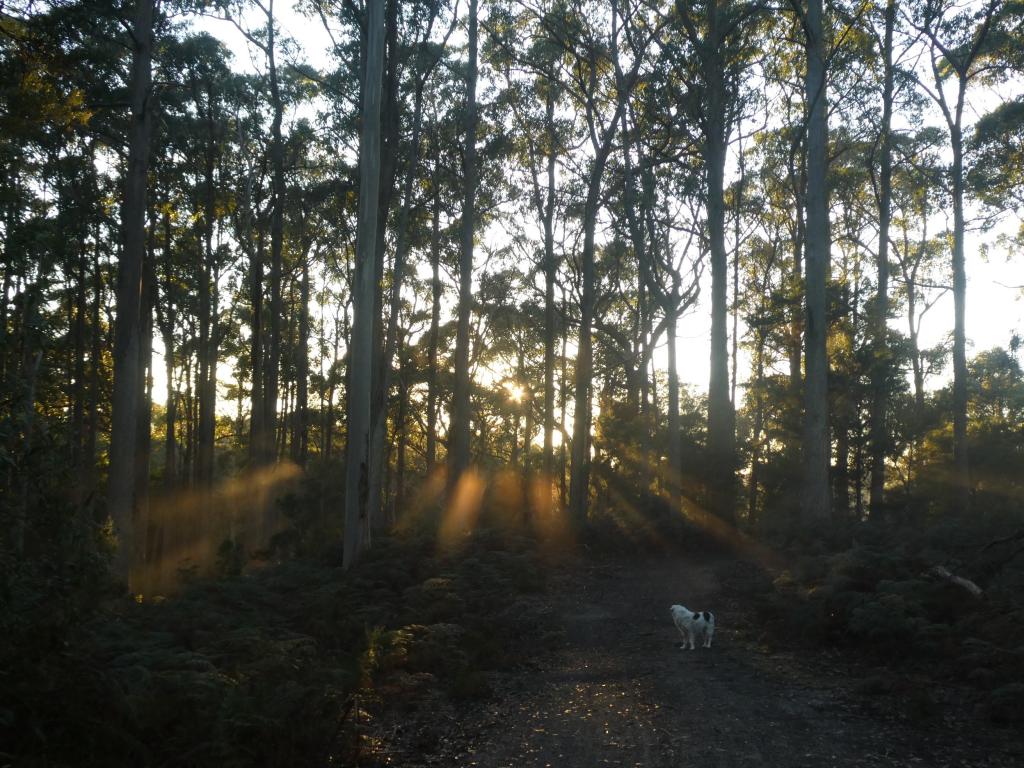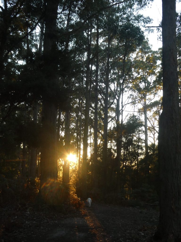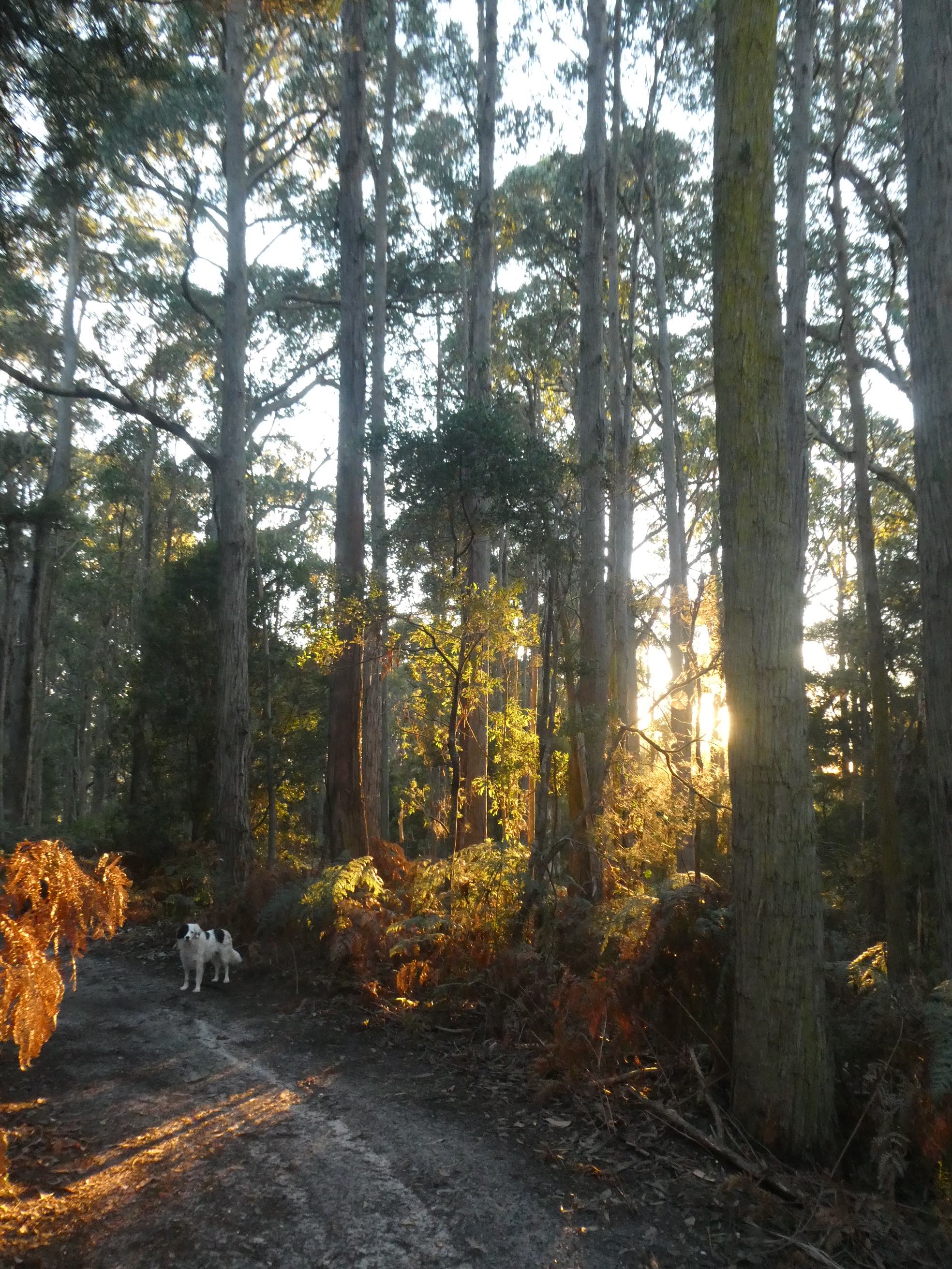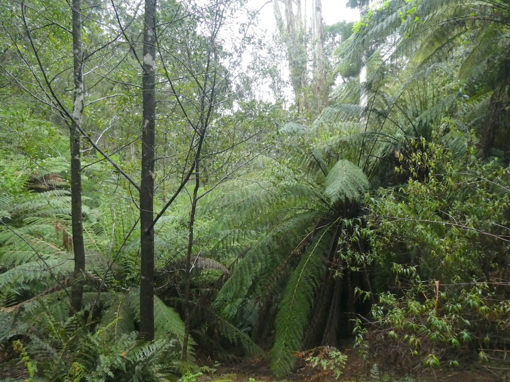 With Michael recently sidelined sporting a badly sprained ankle, I stepped in for Poppy-walking duty. Saturday is always the long walk down the steep hill into our forest. It had been quite a while since my last venture this way and I was amazed how much had changed. The tree ferns are enormous and every shade of green.