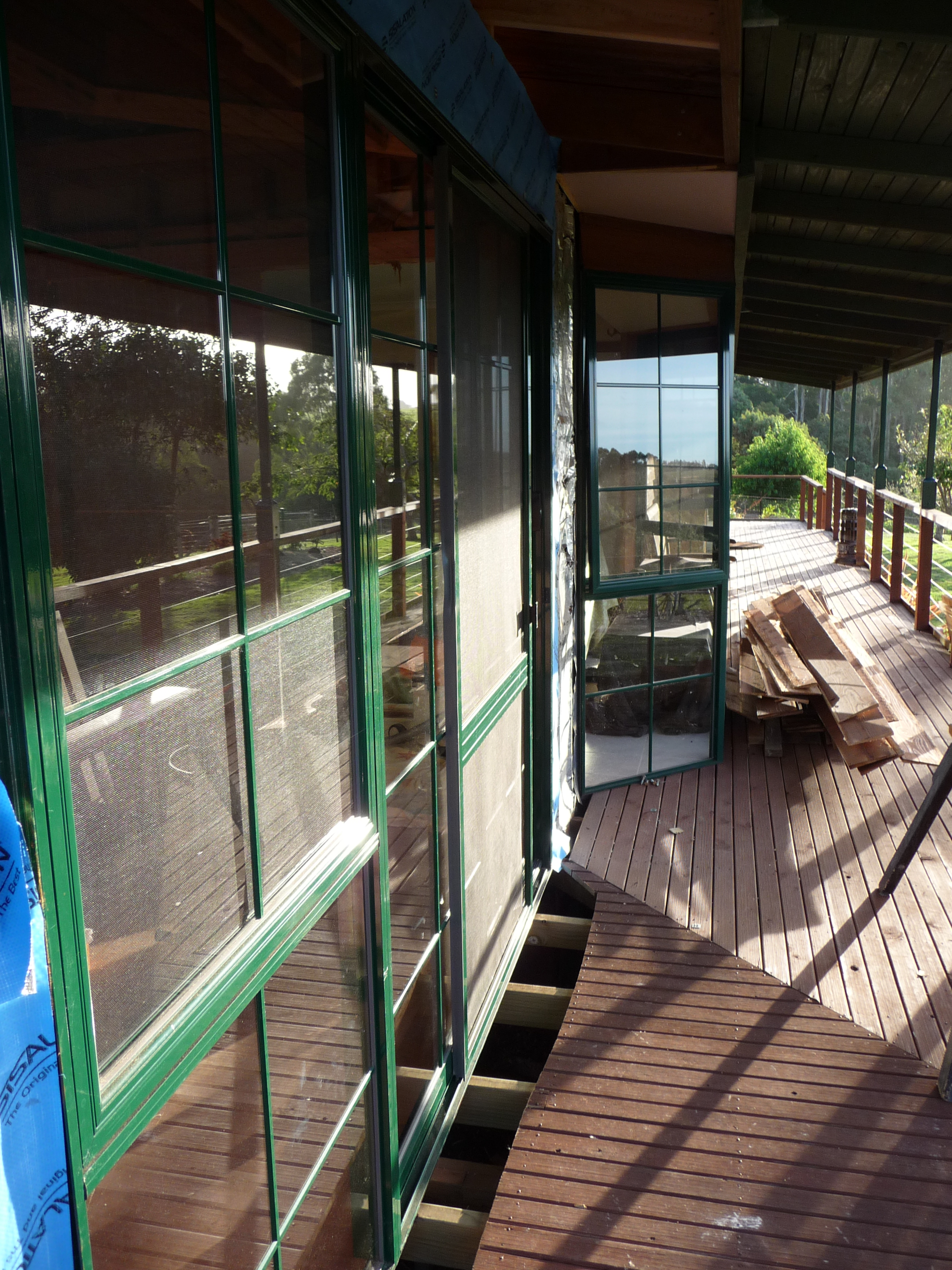 then filled in the gaping hole with Tasmanian oak flooring. The hideous solid wardrobe doors were replaced with Tassie oak framed mirrored ones