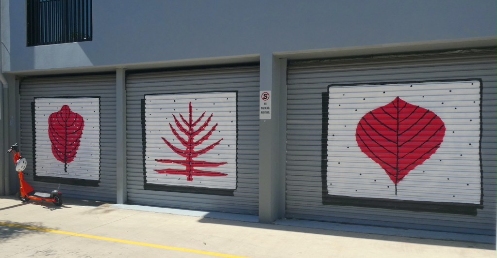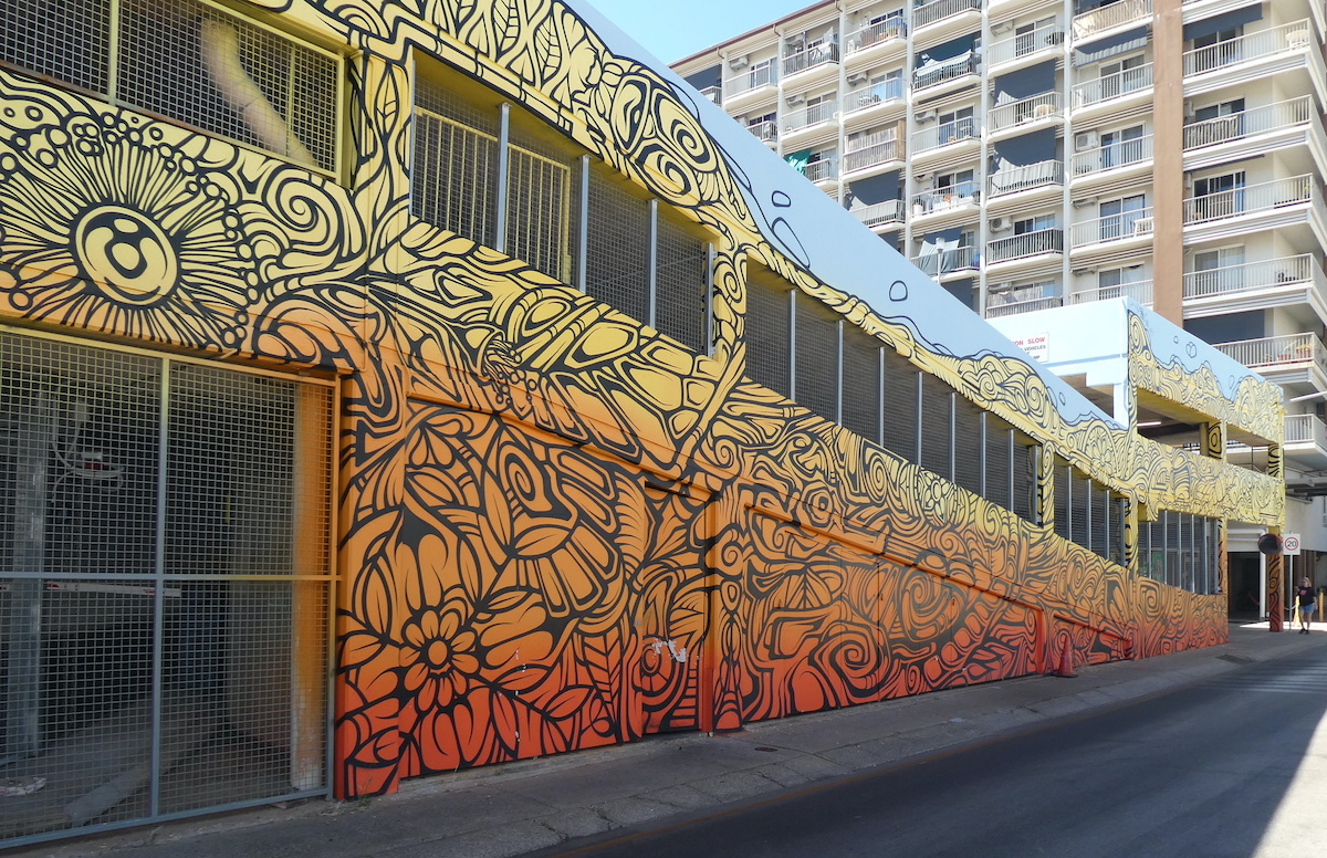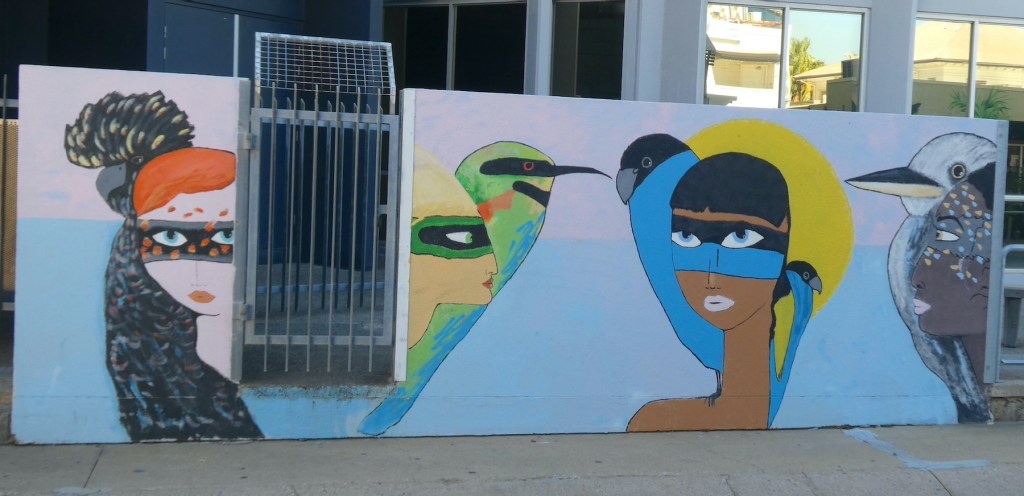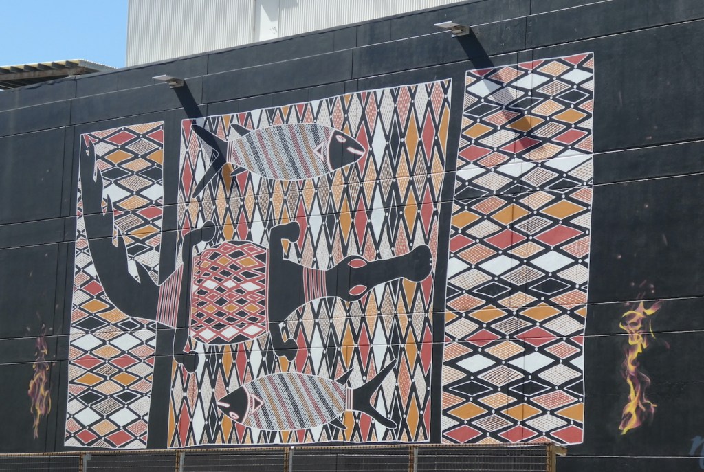 Having run out of time on our first reconnaissance, we returned a few days later to continue our discovery of the artistic embellishments adorning the lanes of Darwin. As well as the annual Darwin Street Art Festival, the ‘Art to Street’ project in July 2019 invited local and emerging artists to create murals on seven public spaces across Darwin. Two of these colour the walls of West Lane Car Park.